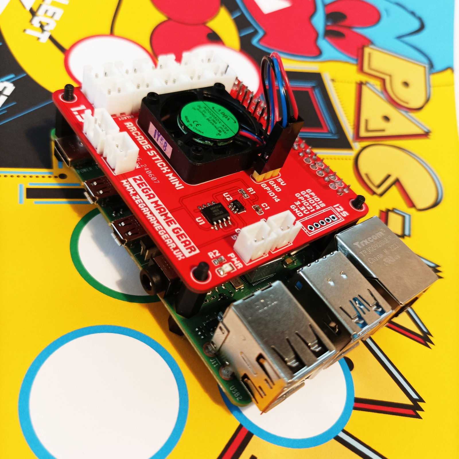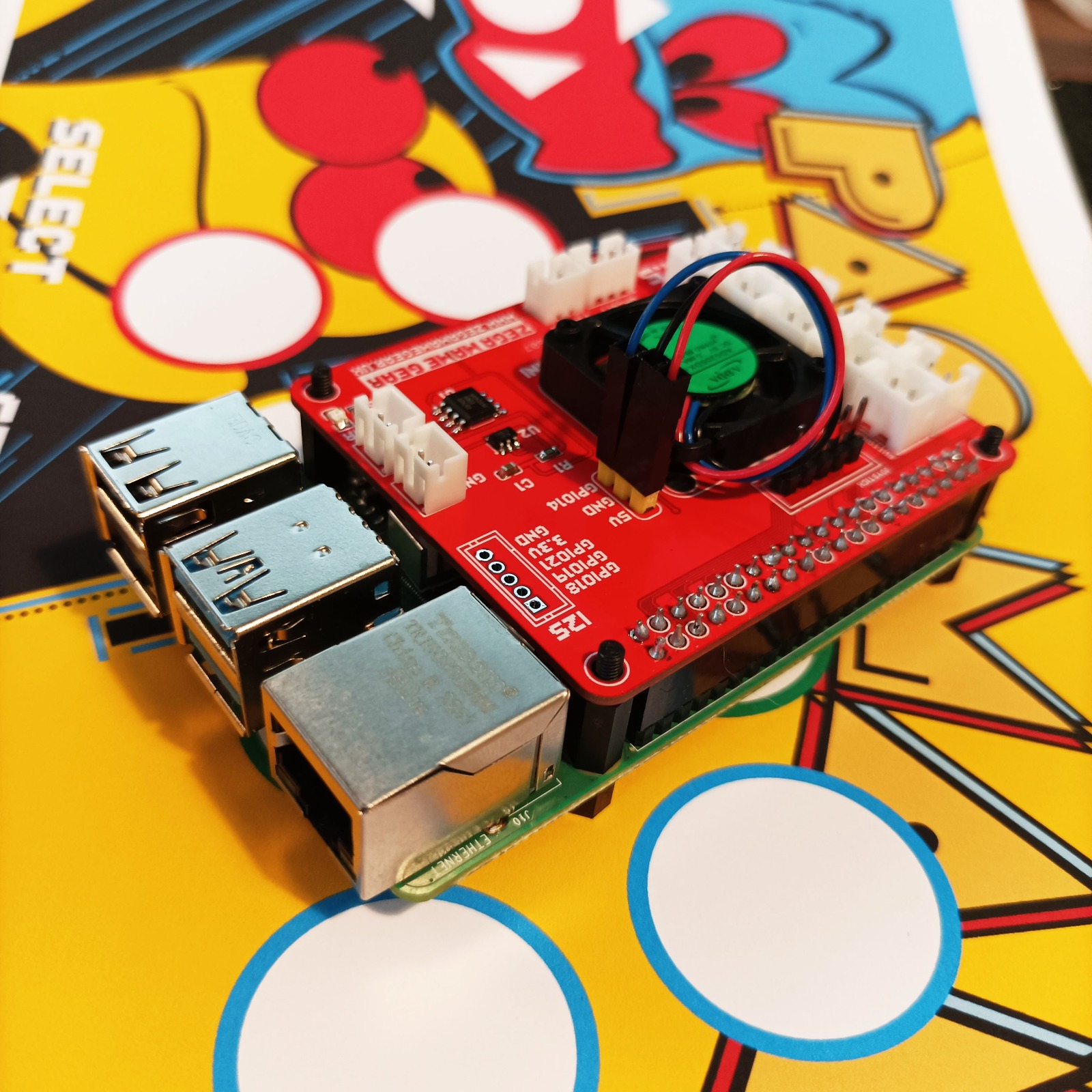 A custom kit designed to build an arcade fight stick using a Raspberry Pi. Allows you to play thousands of retro games using Retropie on your home TV. The Arcade Stick Hat Includes safe shut-down and power-off