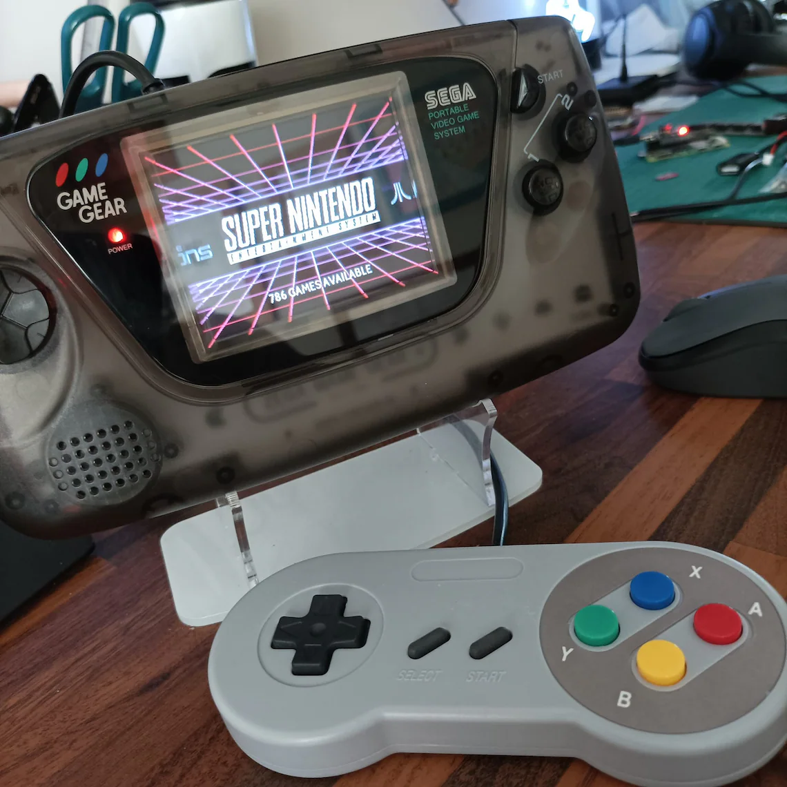A custom PCB kit designed to fit perfectly inside a Game Gear shell. Runs on a Raspberry Pi and allows you to play thousands of retro games using Retropie. Uses rechargeable lithium batteries which can be recharged via USB-C. Includes safe shut-down and power-off and offers crisp, clear digital audio