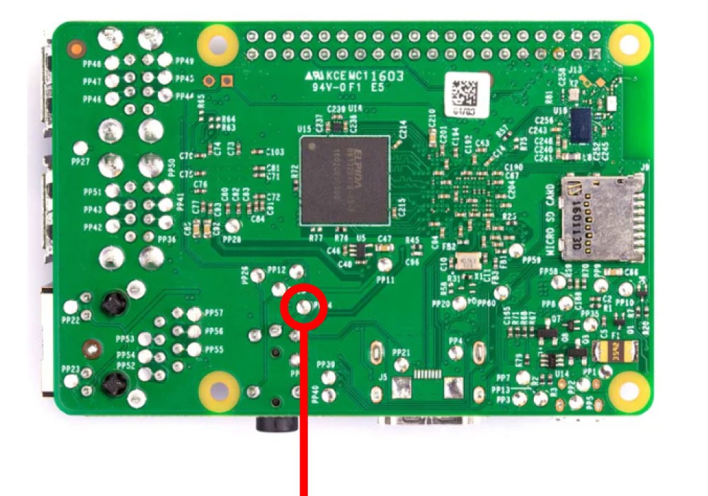 Solder the yellow composite LCD wire to the TV solder pad (PP24) of the Raspberry Pi 3.