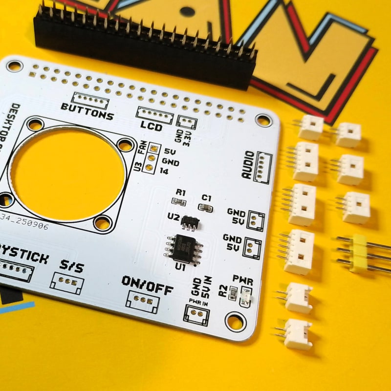 Easily power the Desktop Arcade internals in one PCB, compatible with the Raspberry Pi.